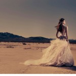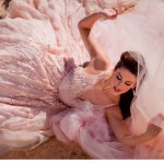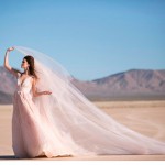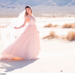 Ready for part two of the fabulous Thirst Relief Series by Wed Society? Queen of the desert, shall we say? This Watters Soledad gown (style 3092B) in soft whisper blush pink is fit for royalty with its dramatic v-neckline and intricate silk taffeta design details with layers upon layers of tulle skirting. They even added a delicate gold crown to complete the look for a couple of shots and add to the glamour of this shoot.