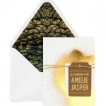 A starting set (or, as B&B calls them, “foundation”) of any of the six just-launched collections includes 50 save-the-dates, wedding invitations and thank you notes, as well as a personal wedding website, style guide, personalize logo and inspiration board. Very snazzy. You can order more in increments of 25, but keep in mind that these designs don’t come cheap. Just like couture, set prices range anywhere from $3,333 for 50 to $23,170 for 500.