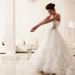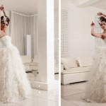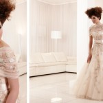 This seasons collection is inspired by gardens in snow clouded by a winter mist. Elegant feathers, delicate embroidery and lavish beadwork combine with floating tulles and rich silk satins for a range that is as luxurious as it is mode.