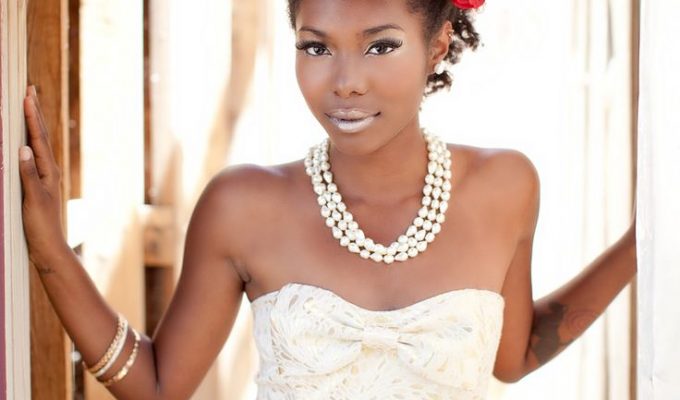 This bridal look is simply stunning! A smokey eye in mauve hues and a nude lip is a flawless makeup idea – the mauve colors are softer than charcoal hues for your wedding day but are still a little sexy…cover with a net veil for high-fashion style.