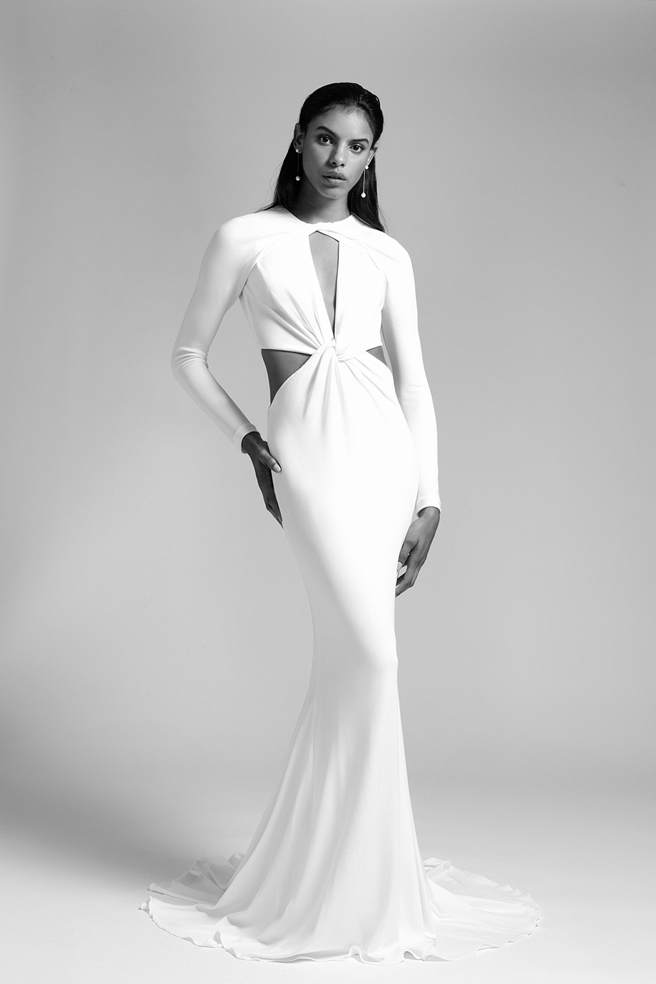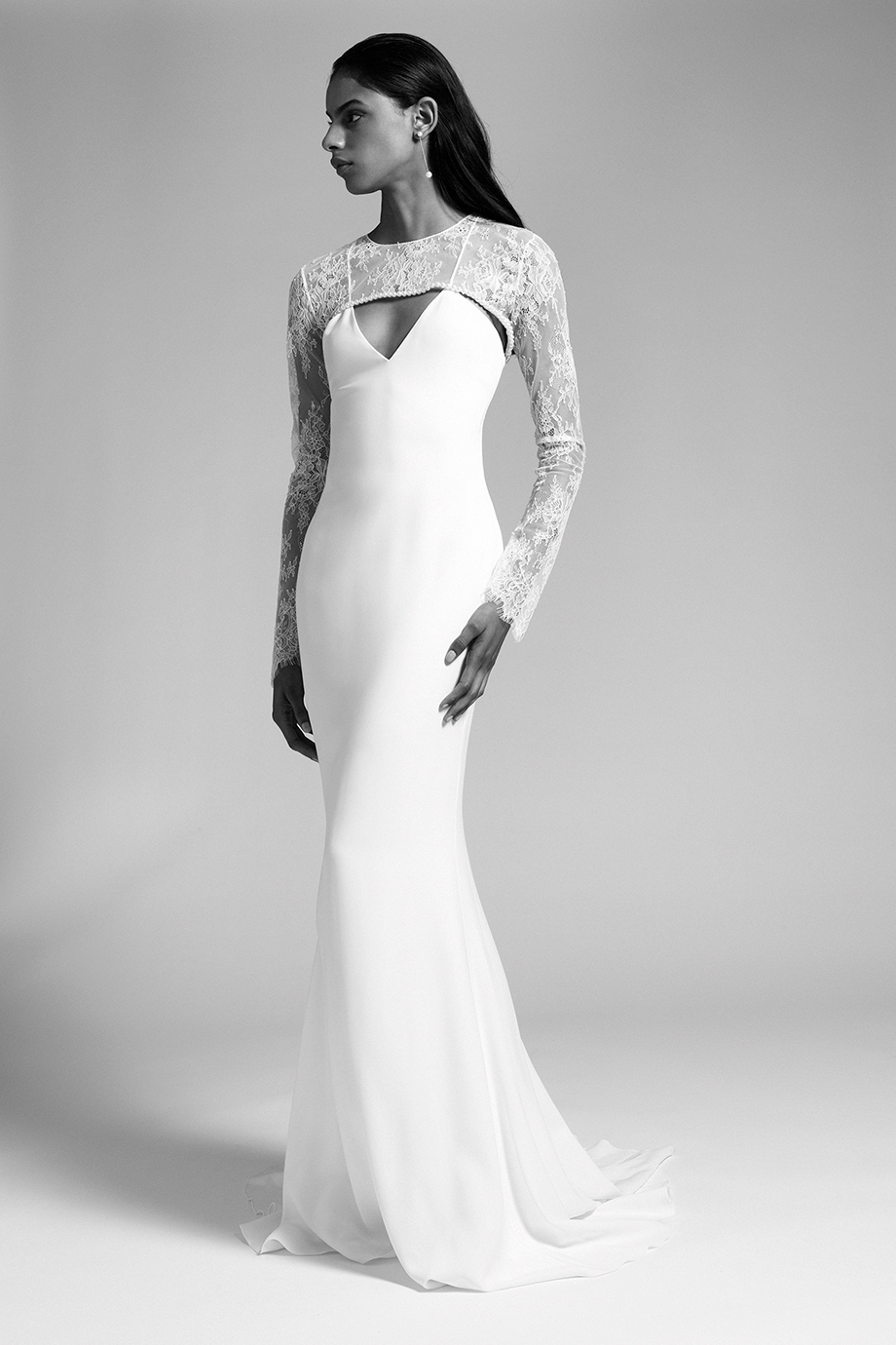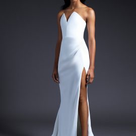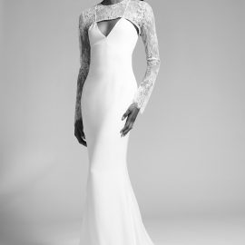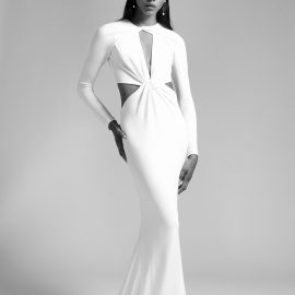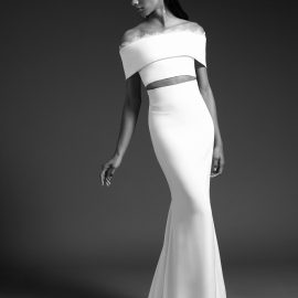Much of Cushnie’s inspiration for the bridal collection came from the experience of designing her own wedding celebration looks for her Mexico City nuptials last year. Though she said that experience was “difficult at first,” since she had no starting point or singular reference, Cushnie ultimately “didn’t really deviate from the Cushnie aesthetic.” She played with lace and a few ruffles, but designing a wedding wardrobe simply felt like a natural extension of her evening- and cocktail-focused line. “Launching bridal is something that I’ve wanted to do for quite some time,” she says. “I’ve been fortunate enough to work on custom bridal pieces for friends and family and have often re-created existing styles in white for customers who requested it for their wedding.” She adds: “My collections are always focused around the female form, creating clean silhouettes that make a woman feel both sexy and elegant. Bridal is the ultimate opportunity for me to do that in a really special way.”
