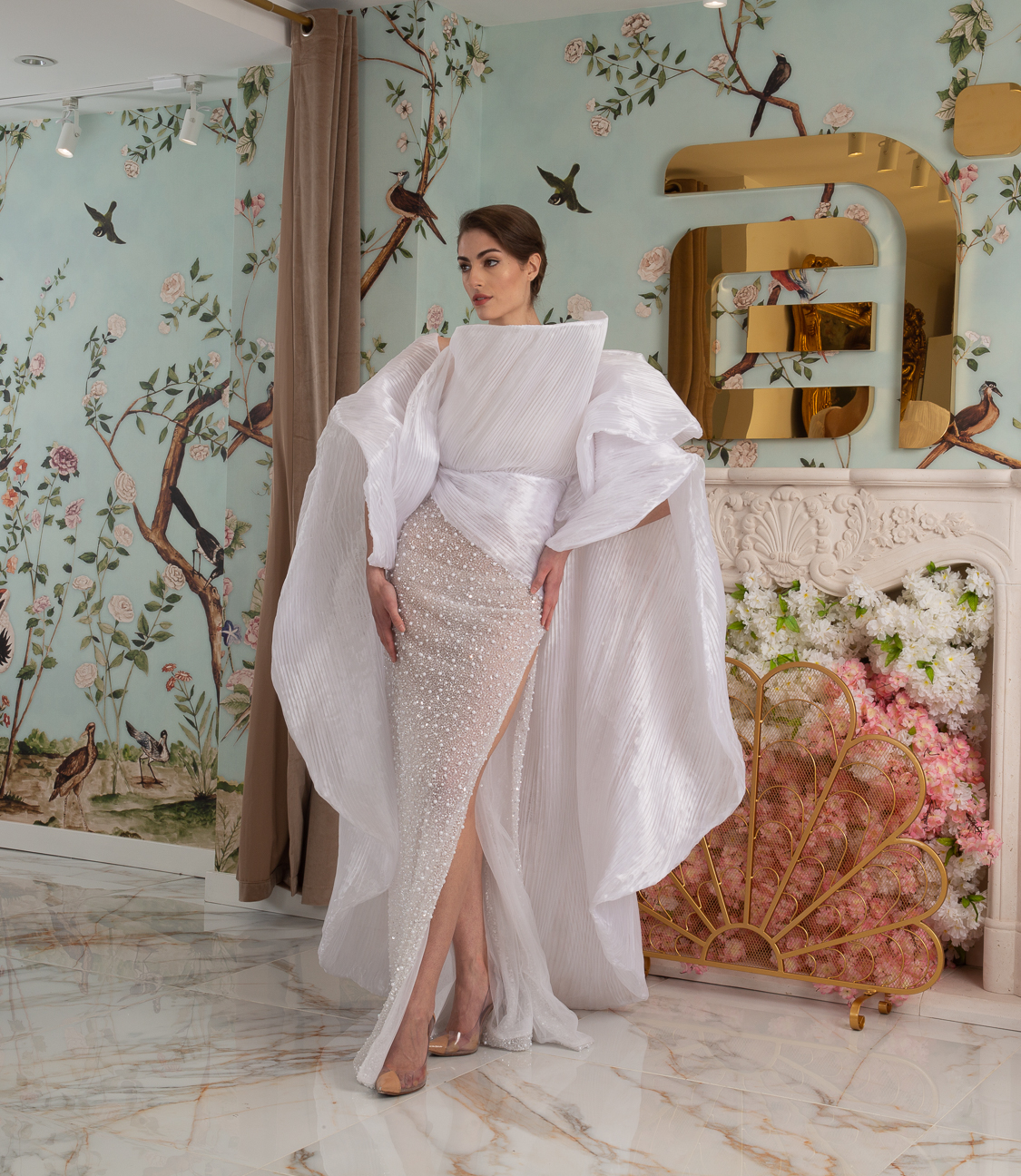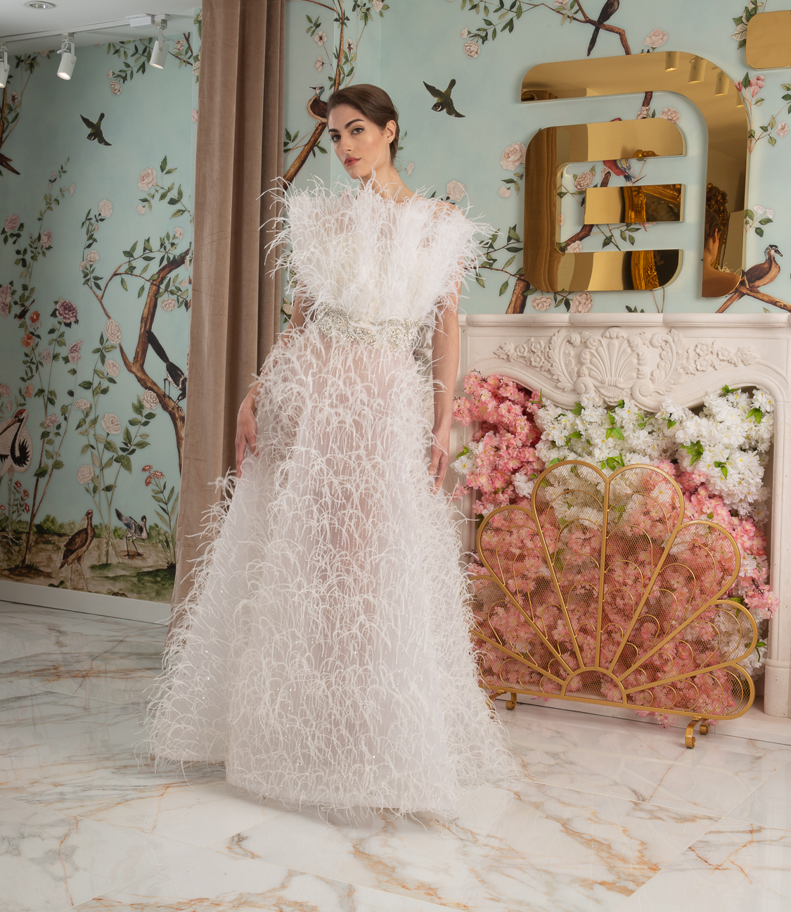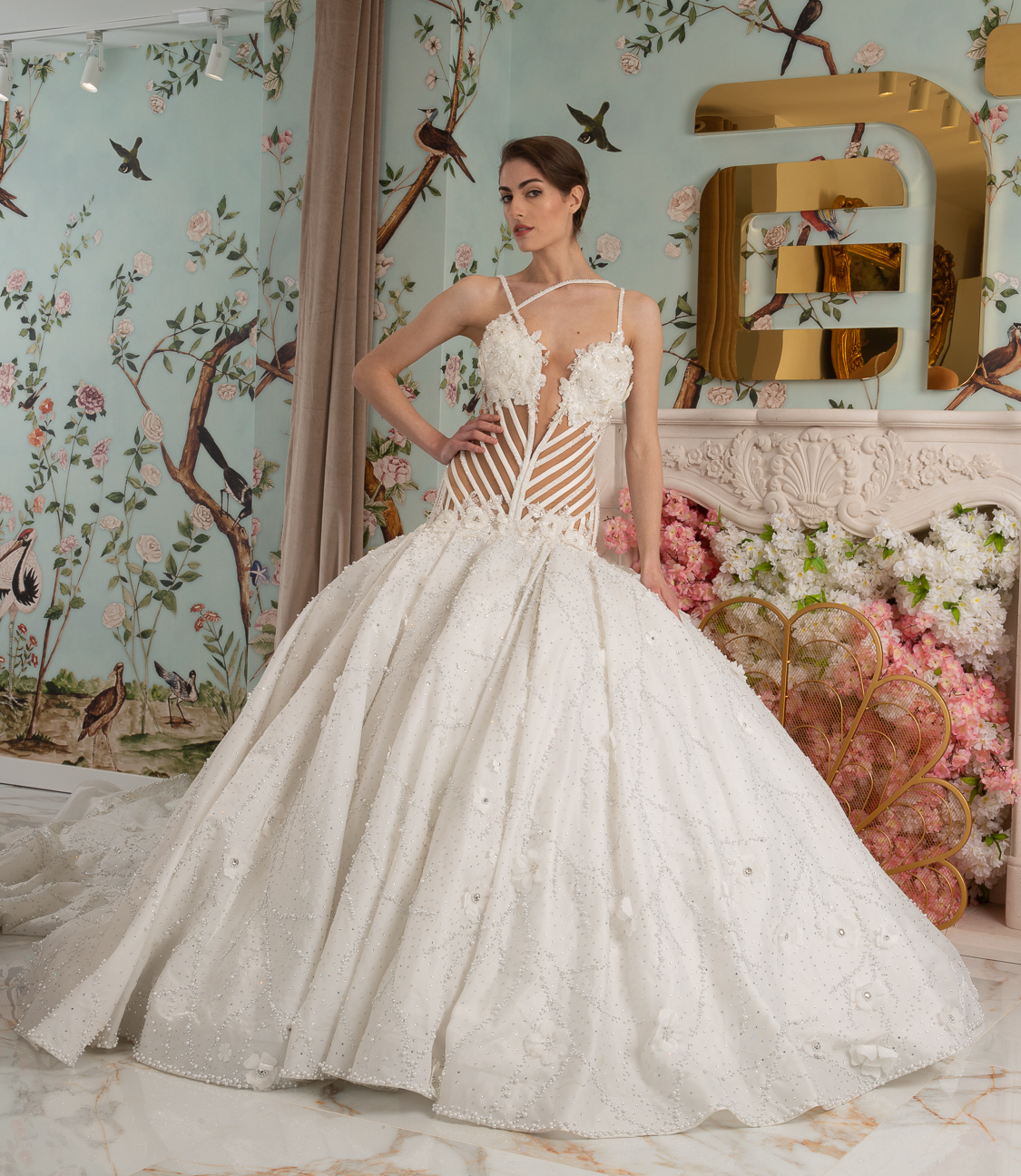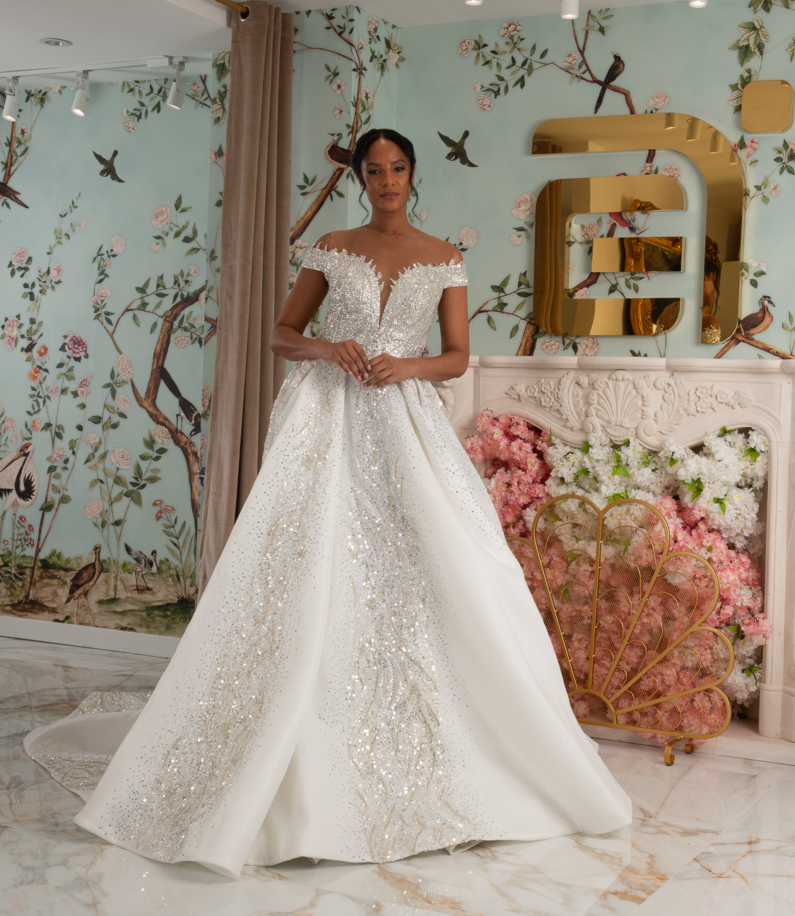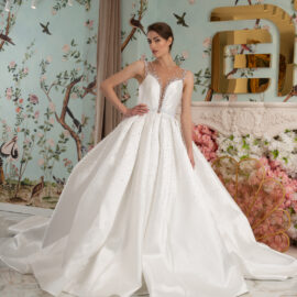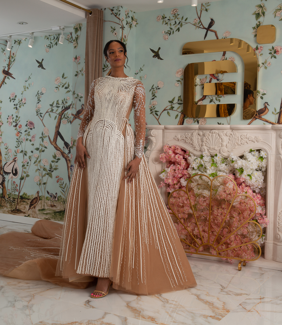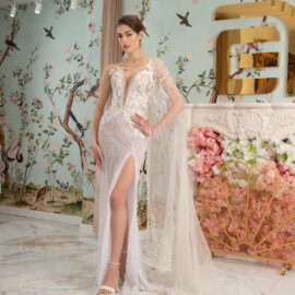 New York Bridal Fashion Week saw the debut of Esé Azénabor’s latest collection, “Essence.” This couture runway collection showcased the designer’s affinity for texture, incorporating fabric manipulation, Swarovski crystals, ostrich feathers, and 3-D floral patterns. The painstakingly hand-beaded pearls added depth and dimension to the gowns, producing breathtaking, one-of-a-kind pieces for brides seeking innovation and originality.