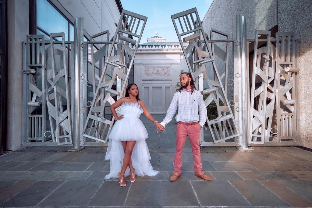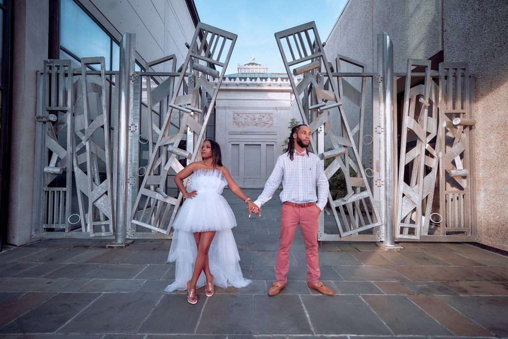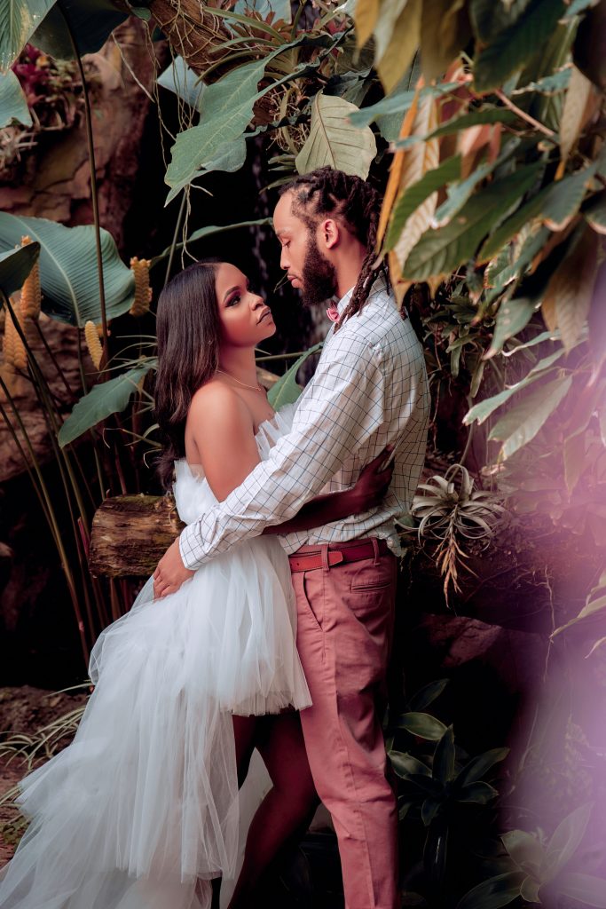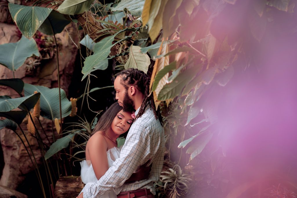 The couple wanted to shoot at the Botanical Gardens location in New Orleans City park. The couple was photographed inside the Botanical Garden’s greenhouse, outside of the New Orleans Museum of the Arts.