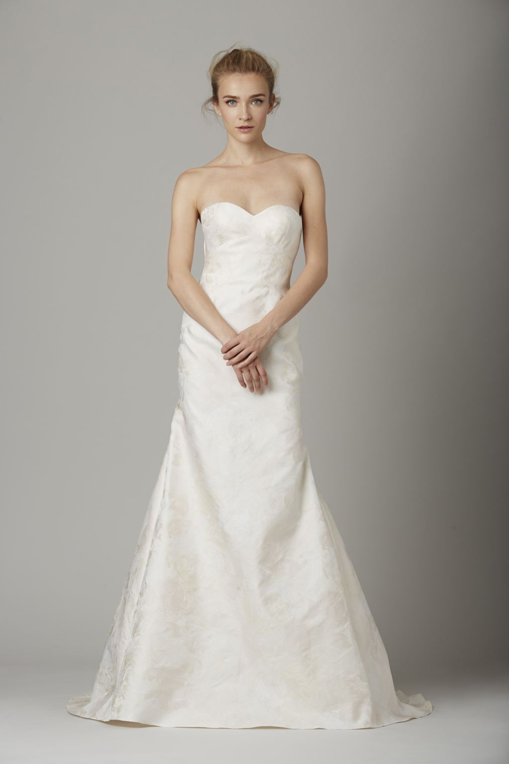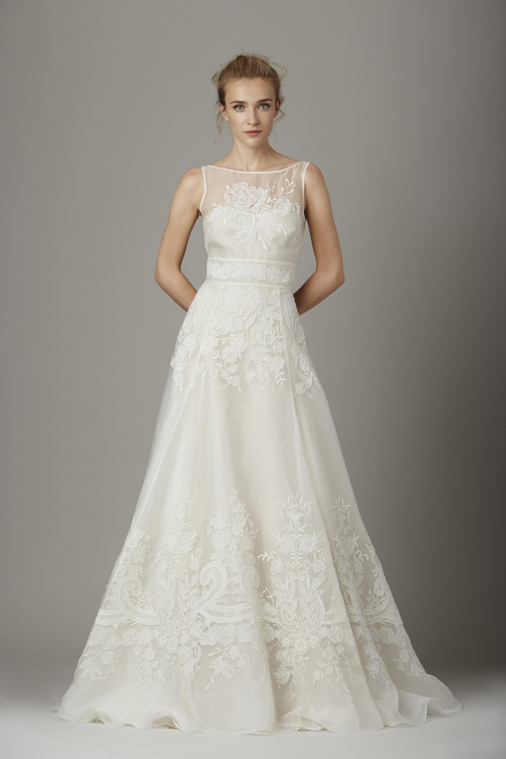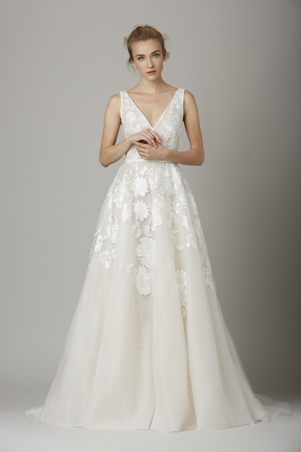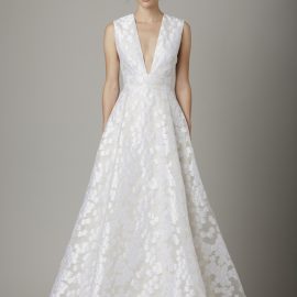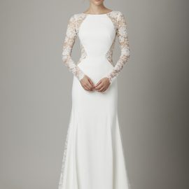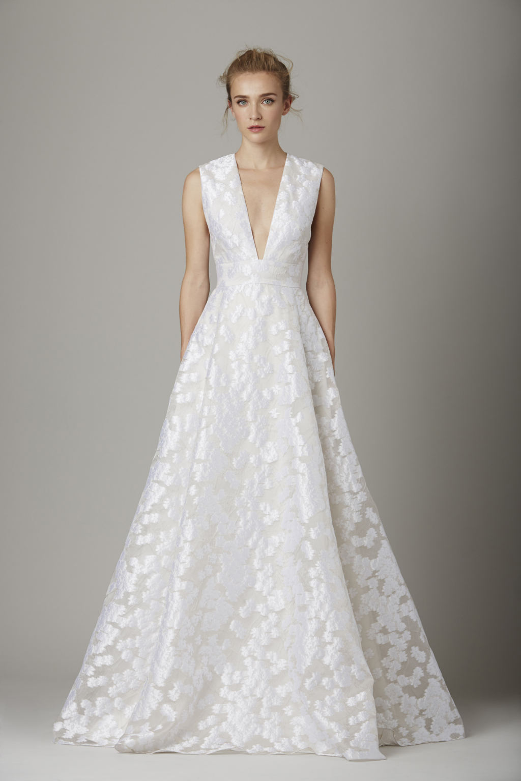 The Looks: For her latest ultra-feminine fall bridal collection, modern silhouettes were paired in classic shades of ivory and white with details that are both romantic and elegant. From A-line, mermaid and fit-and-flare silhouettes, to full-length lace sleeves to necklines that leave little to the imagination.
