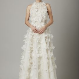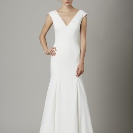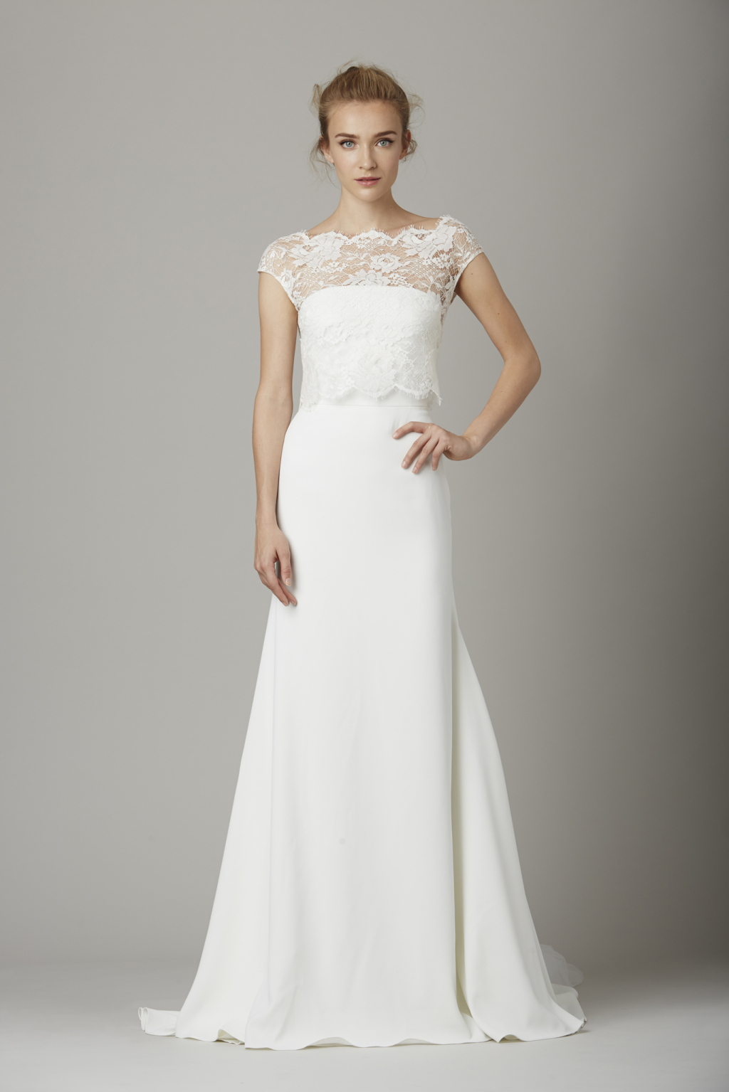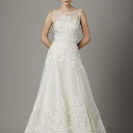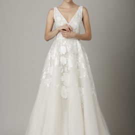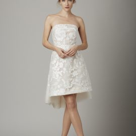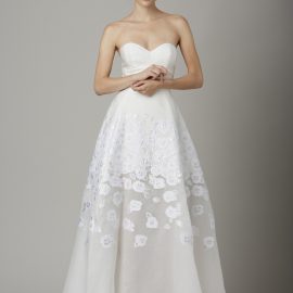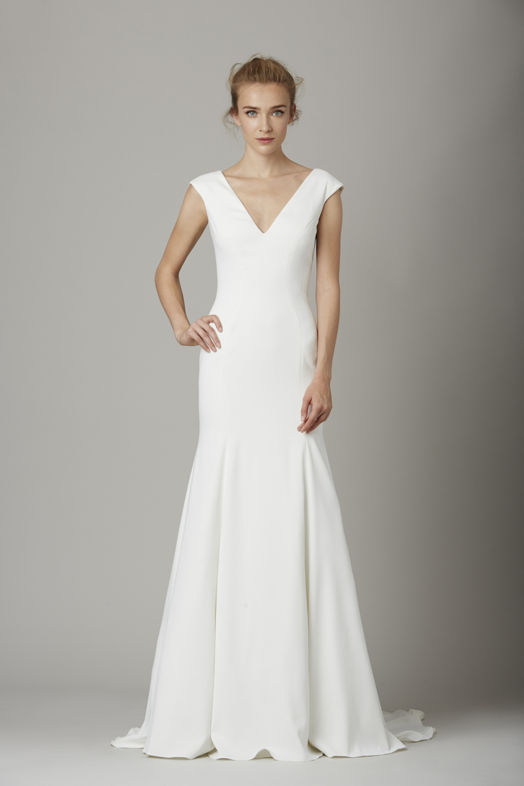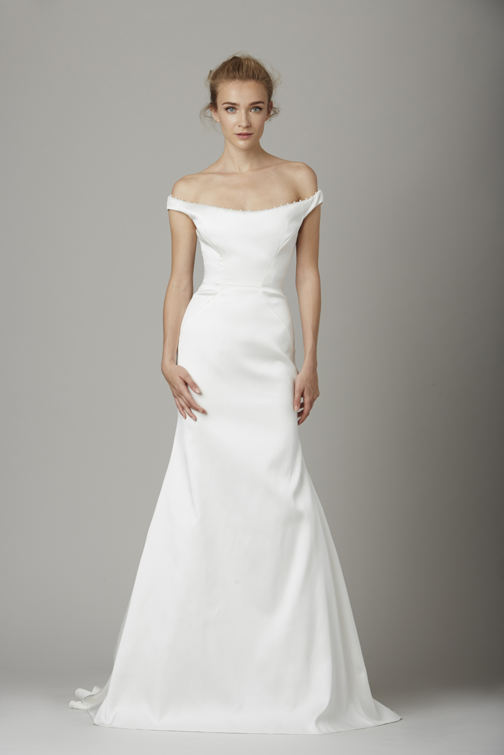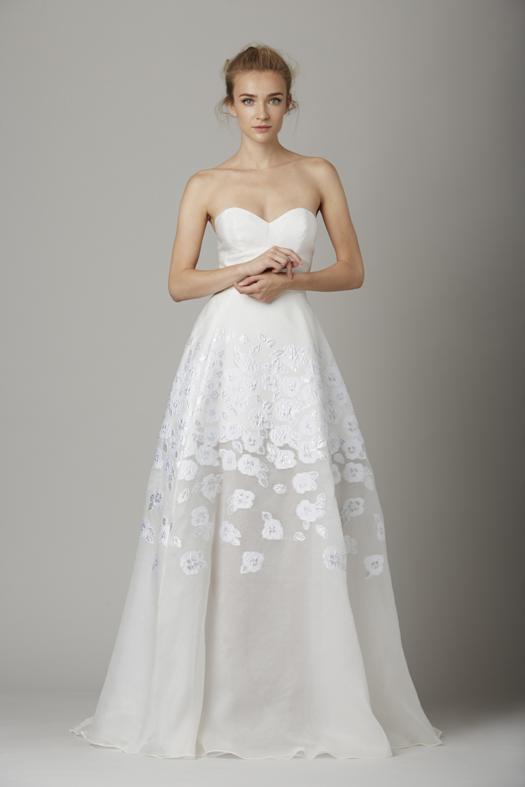 The Looks: For her latest ultra-feminine fall bridal collection, modern silhouettes were paired in classic shades of ivory and white with details that are both romantic and elegant. From A-line, mermaid and fit-and-flare silhouettes, to full-length lace sleeves to necklines that leave little to the imagination.