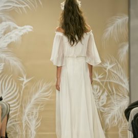 The sun will tint her pale winter skin with a golden glow, her hair will flow untamed in the cool ocean breeze. Her THEIA gown will be simple, easy and breezy, with a relaxed bohemian vibe. Shoulders are exposed and emphasized, wrapped in cotton guipure laces, ethereal silk mousselines, delicate embroideries and hand beaded tulles.