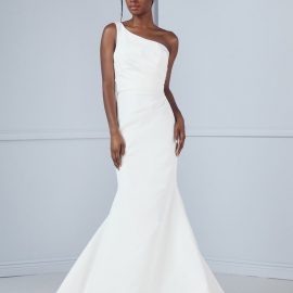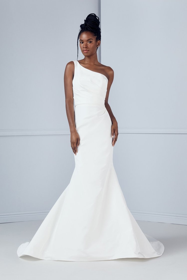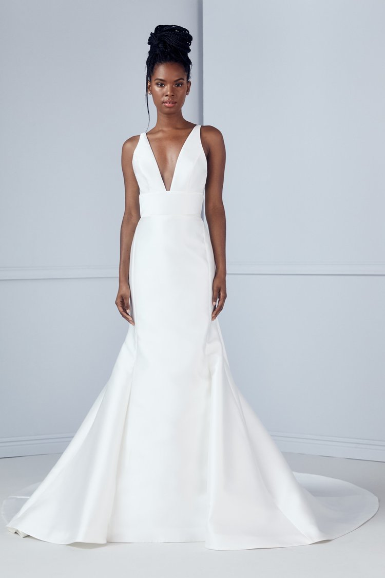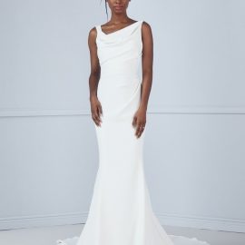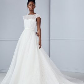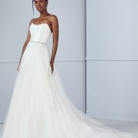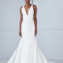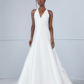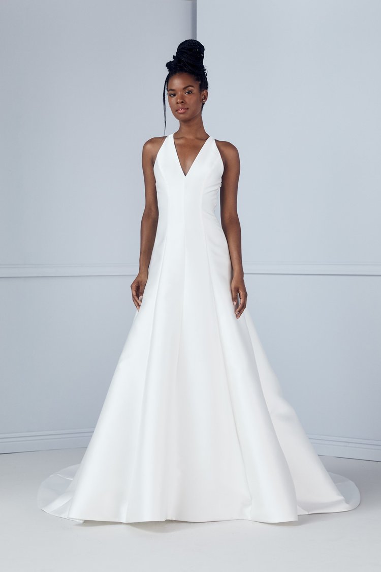 Since Amsale Aberra first launched her namesake label in 1990 with groundbreaking designs, her minimalist aesthetic changed the course of wedding dress trends. The Ethiopian-American designer’s eponymous label came about during Amsale’s own search for a more streamlined, sophisticated wedding gown. Disappointed with the over-the-top wedding dresses of the ’80s, she designed her own gown. Determined to serve brides like herself in the years that followed, Amsale started selling custom wedding gowns from her New York City apartment. Although Amsale passed away in April 2018, The Amsale Fashion House is devoted to carrying on her 30-year legacy under the design direction of Margo Lafontaine. The brand now has three lines: Amsale, Amsale Nouvelle and Little White Dress by Amsale.