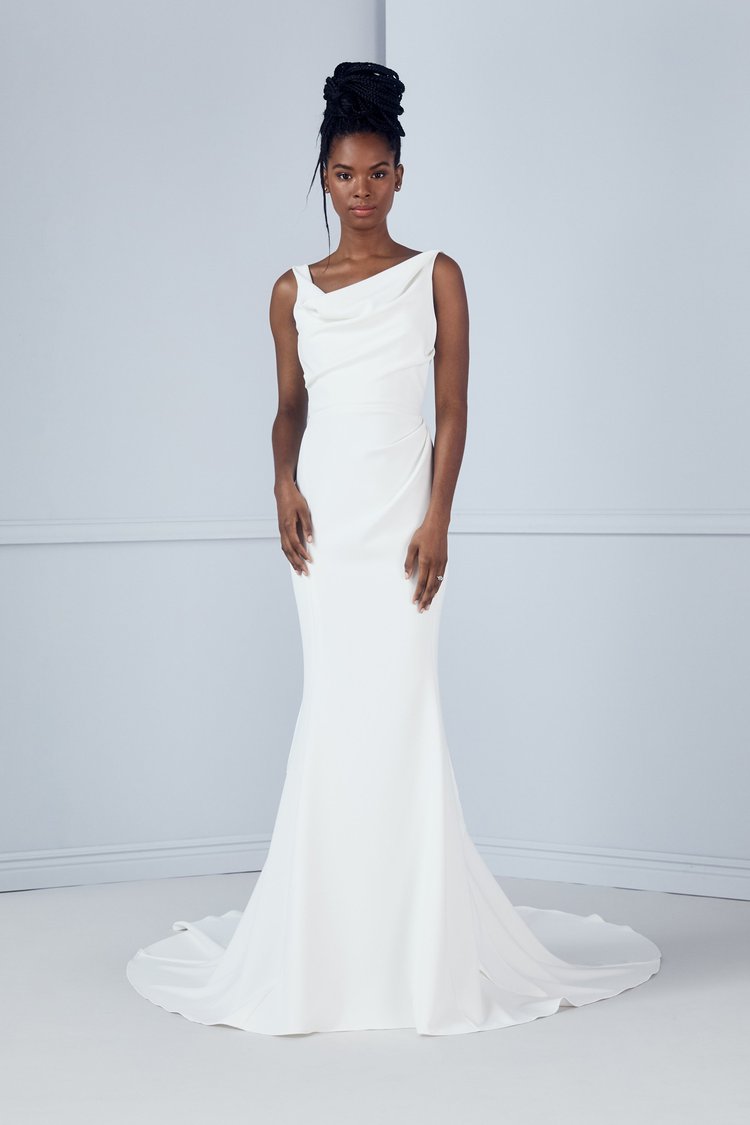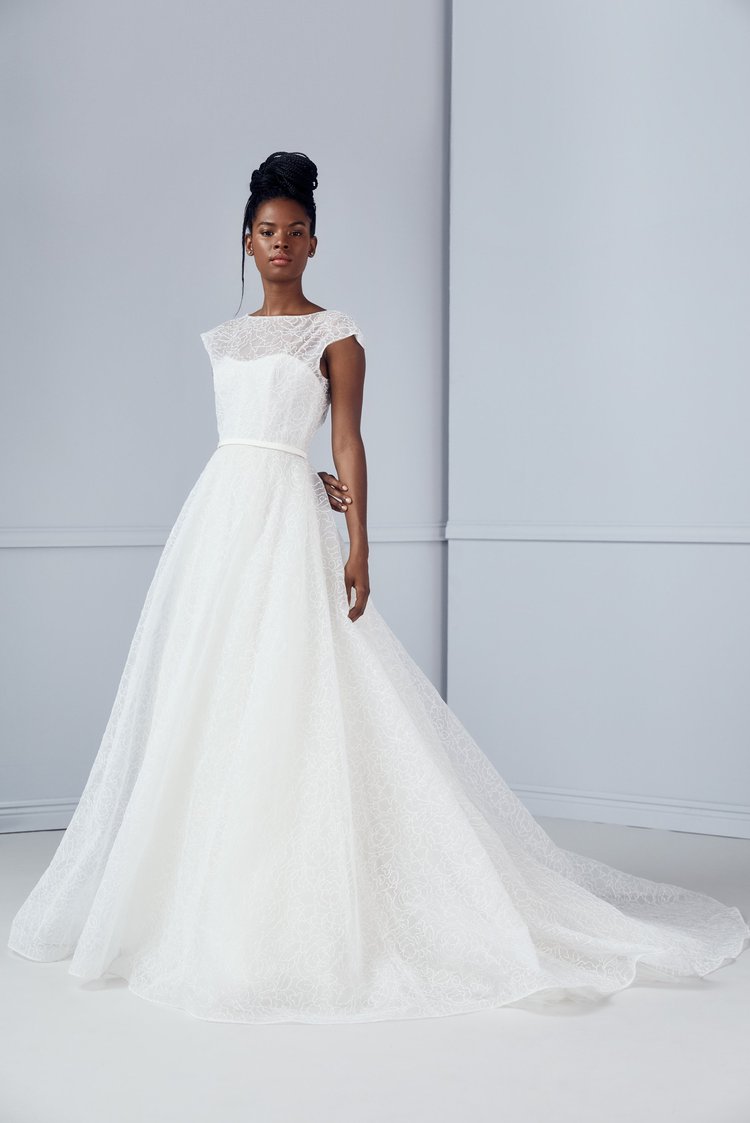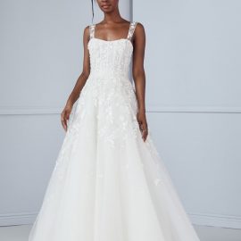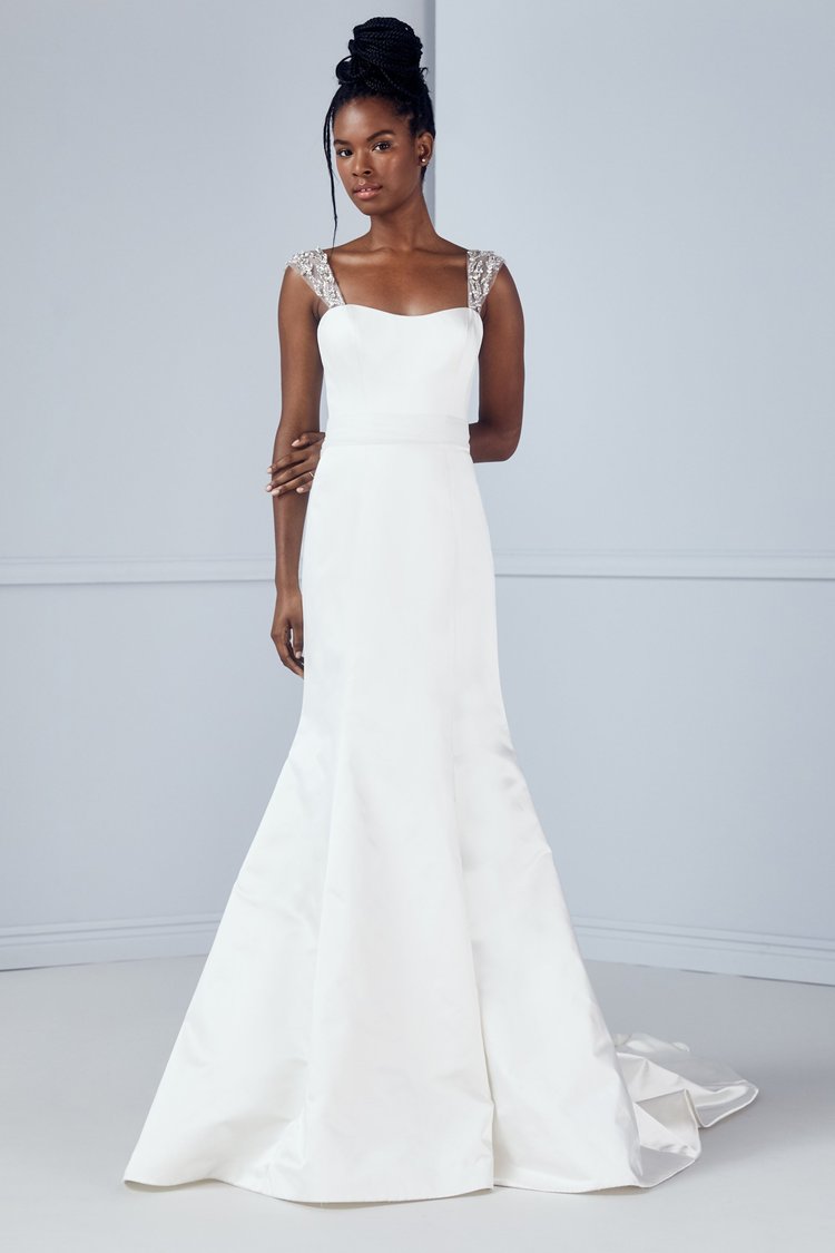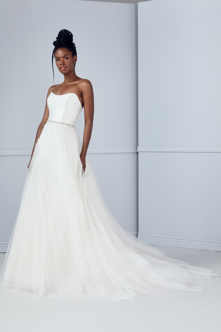 Since Amsale Aberra first launched her namesake label in 1990 with groundbreaking designs, her minimalist aesthetic changed the course of wedding dress trends. The Ethiopian-American designer’s eponymous label came about during Amsale’s own search for a more streamlined, sophisticated wedding gown. Disappointed with the over-the-top wedding dresses of the ’80s, she designed her own gown. Determined to serve brides like herself in the years that followed, Amsale started selling custom wedding gowns from her New York City apartment. Although Amsale passed away in April 2018, The Amsale Fashion House is devoted to carrying on her 30-year legacy under the design direction of Margo Lafontaine. The brand now has three lines: Amsale, Amsale Nouvelle and Little White Dress by Amsale.