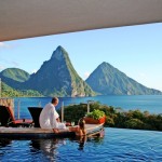 Jade Mountain Resort overlooks St. Lucia’s Piton World Heritage Site and the Caribbean Sea and features infinity pools with every room. The bold architectural design with individual bridges leading to the extraordinary infinity pool suites and columns reaching towards the sky makes JADE MOUNTAIN one of the Caribbean’s most mesmerizing resort experiences.